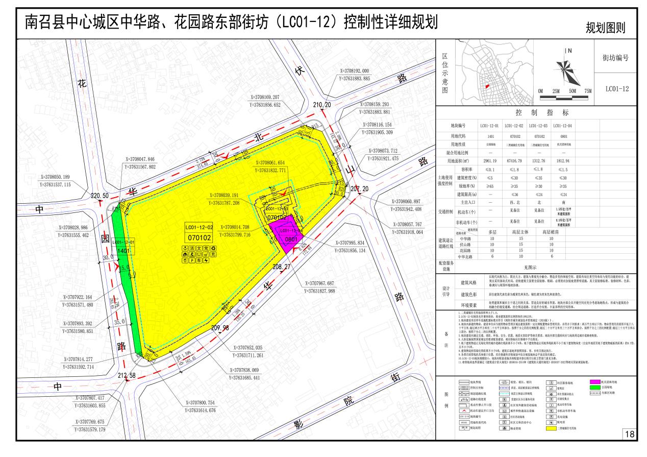 《南召县中心城区中华路、花园路东部街坊(LC01-12) 控制性详细规划》公示方案