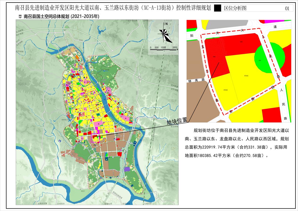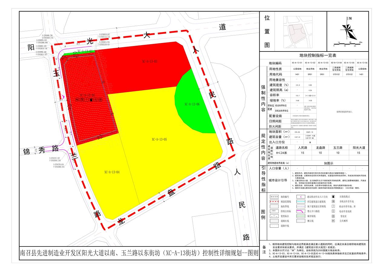 《南召县先进制造业开发区阳光大道以南、玉兰路以东街坊(XC-A-13街坊)控制性详细规划》公示方案