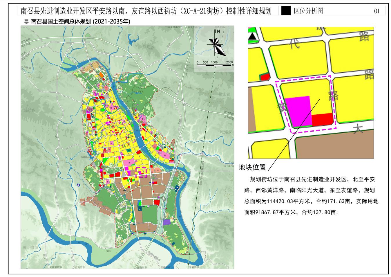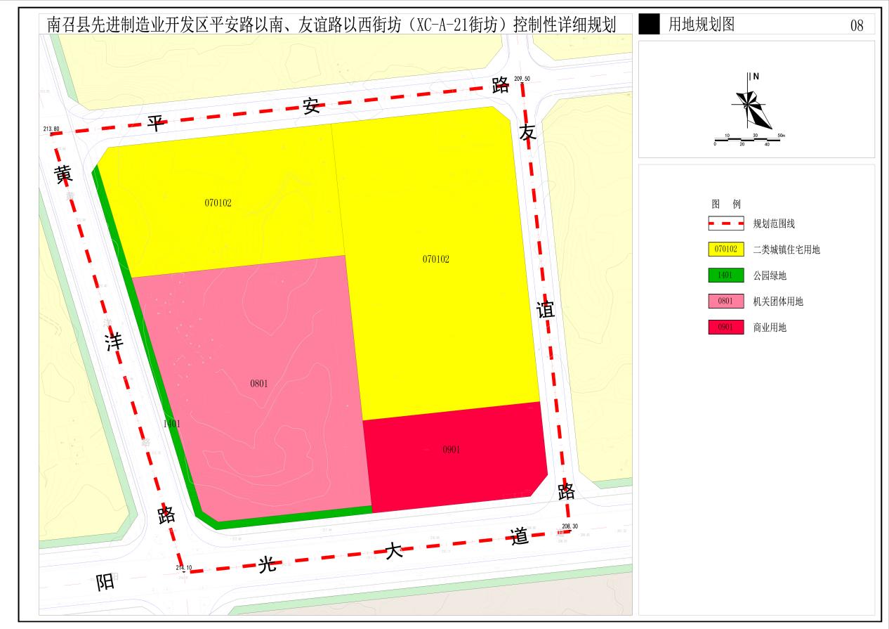 《南召县先进制造业开发区平安路以南、友谊路以西街坊(XC-A-21街坊)控制性详细规划》公示方案